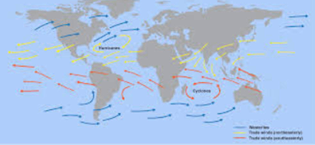 or easterlies, are the permanent east-to-west prevailing winds that flow